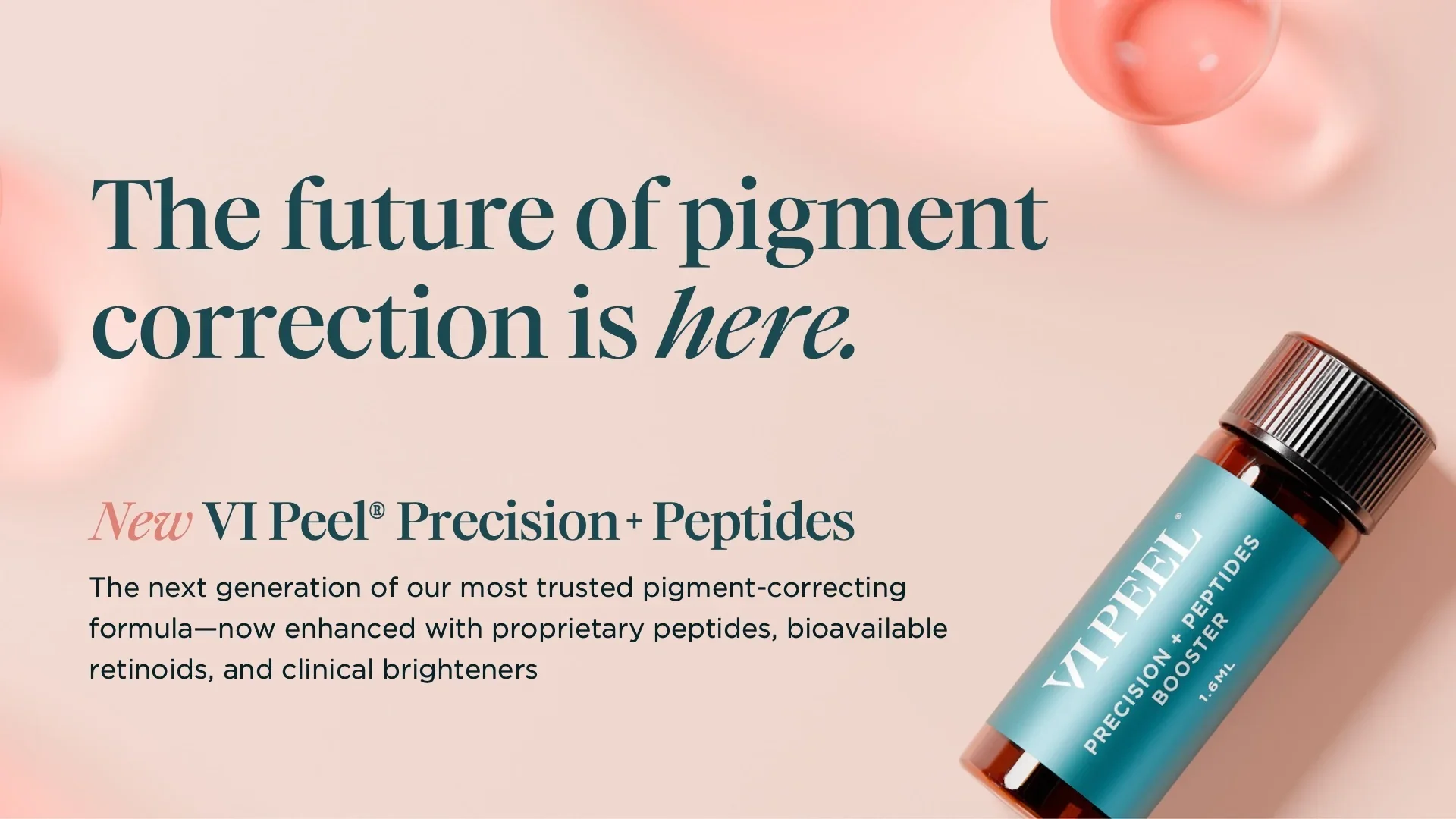 New VI Peel® Precision + Peptides is the next generation of our most trusted pigment-correcting formula—now enhanced with proprietary peptides, bioavailable retinoids, and clinical brighteners.